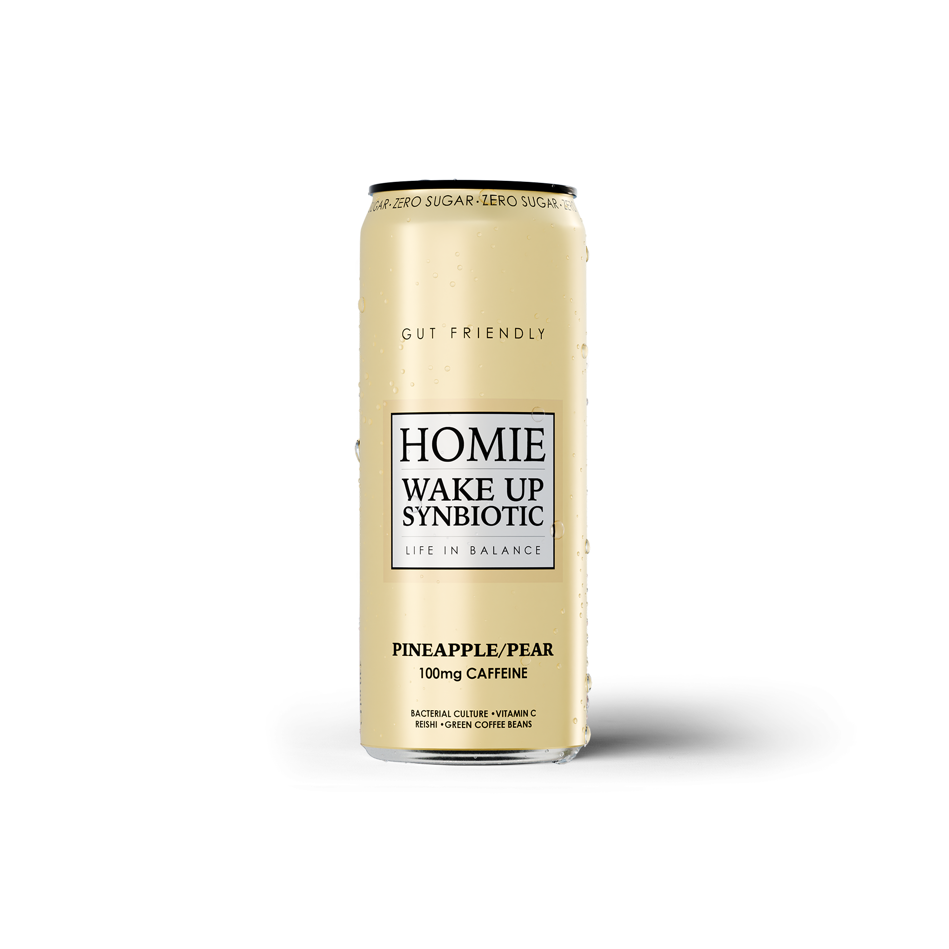 Många energidrycker fokuserar på koffein och taurin och det är allt. Wake Up Synbiotic från Homie har en helt annan komposition och är i många avseenden en avancerad och väl genomtänkt dryck. Den är givetvis kolsyrad och smakar fantastiskt men samtidigt har den ett mycket intressant innehåll.